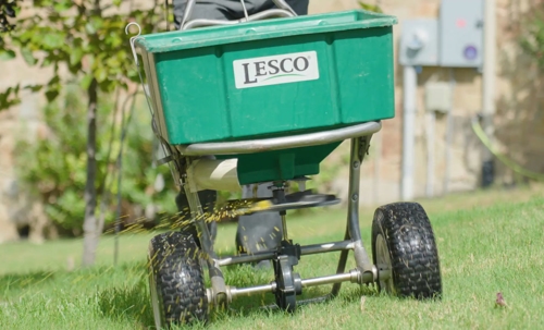 - Granules can be applied with a walk-behind or push spread across an entire lawn. This process requires two passes and manual application along the edges.